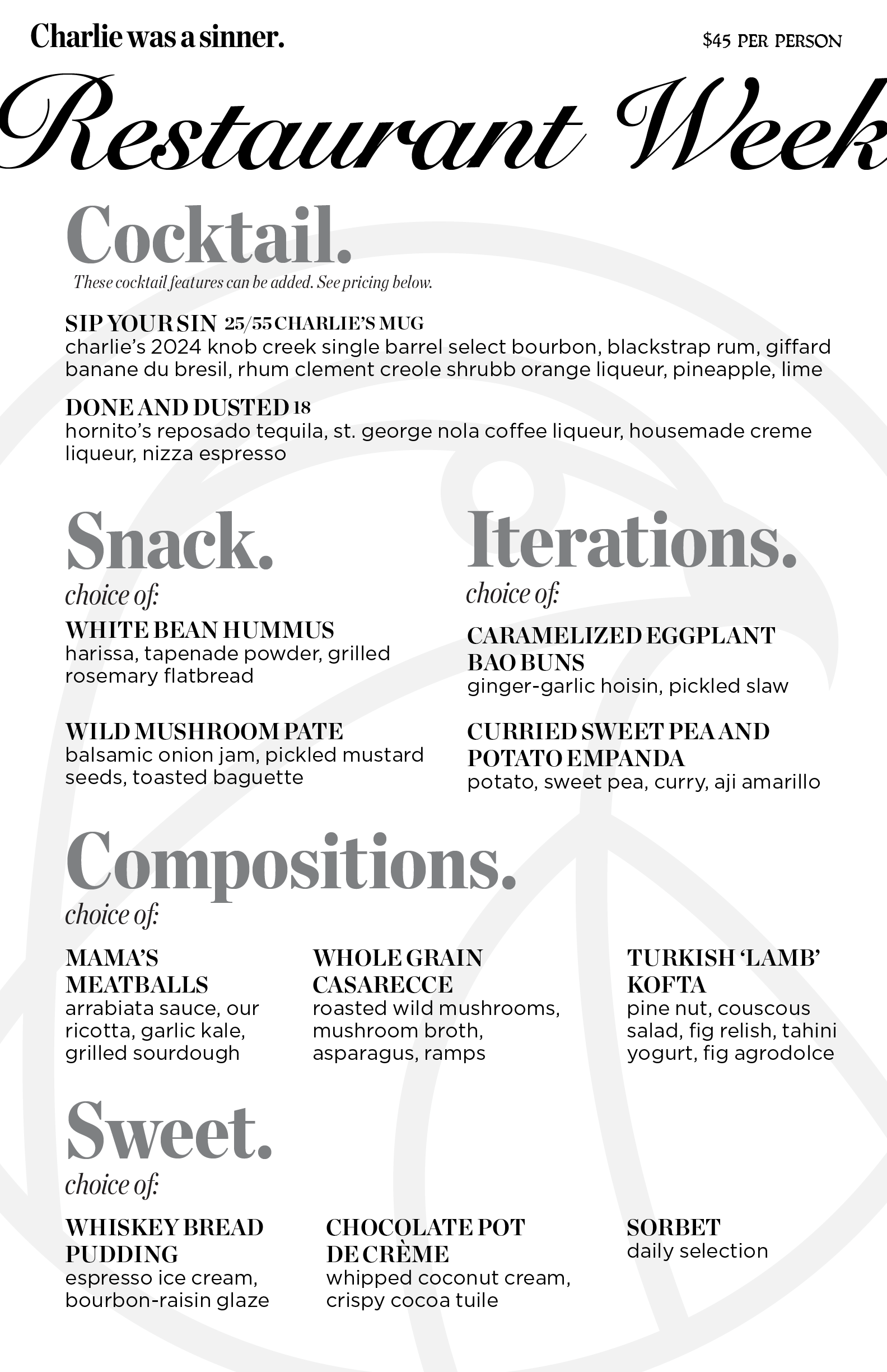 charlie's 2024 knob creek single barrel select rye, misu shochu, creme de gingembre, kombu, lemongrass, angostura and orange bitters